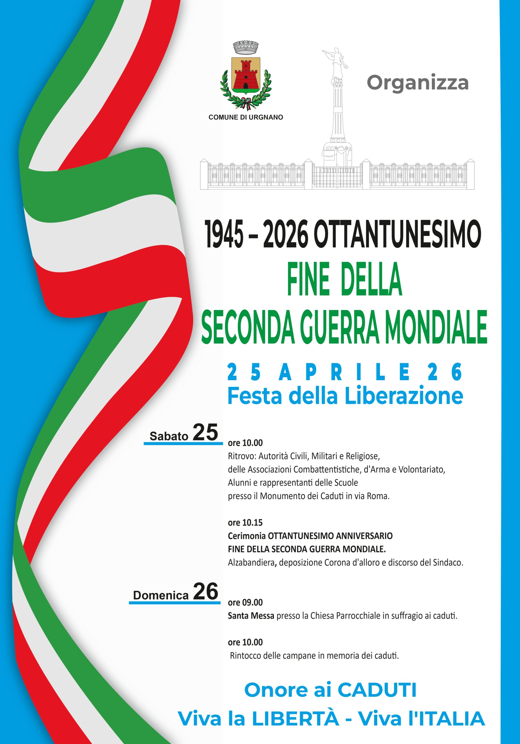Luogo Urgnano Via Cesare Battisti, 74 - 24059 – Urgnano (BG) Date e orari 25 Apr 10:00 - Inizio evento 25 Apr 00:00 - Fine evento Aggiungi al calendario Costi Gratuito. Allegati Festa della liberazione - 25 aprile Contatti cultura@urgnano.eu Ultimo aggiornamento: 14/04/2026, ore 11:57